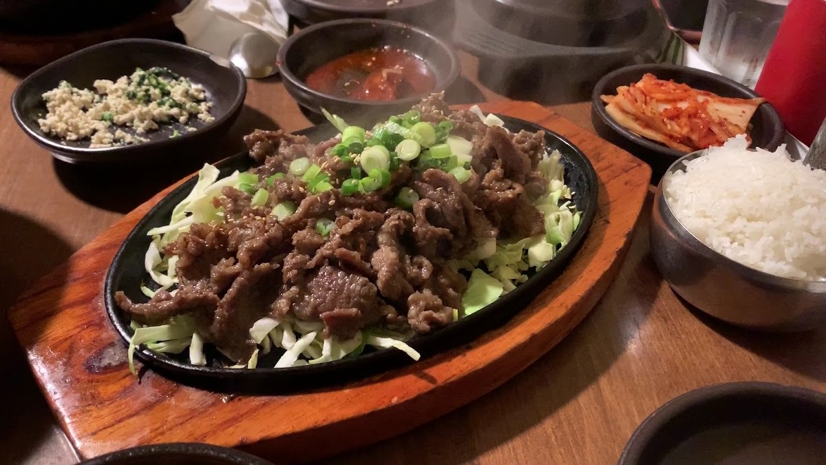 Visited on a Thursday night around 6:45pm with a friend, restaurant had several other guest but several open tables so we're seated right when we arrived. Food: Mushroom beef tofu soup - really tasty.came out bubbling hot, asked for medium level spice and it was very pleasant and balanced. Soup had great savory flavor with a nice chili notes, and beefy notes. Silken tofu helped cut some of the heat,. veggies rounded out the dish. Banchan - okay selection of kimchi, potato, cold tofu, and zucchini kimchi, all were on the large chunky side, with decent flavor but nothing noteworthy Crispy rice that accompanied the tofu soup was fantastic, perfectly crunchy and tasty with a slight char added great texture to the tofu soup Drinks: Banana Makgeoli - sweet, creamy, slightly effervescent, a unique rice wine with a banana flavor Service was fine, quick and efficient, staff brought out dishes quickly and brought out water, banchan and drinks promptly after ordering. Overall really enjoyed the tofu soup here, super warm and comforting, portions are generous and service is quick. Definitely worth a visit.